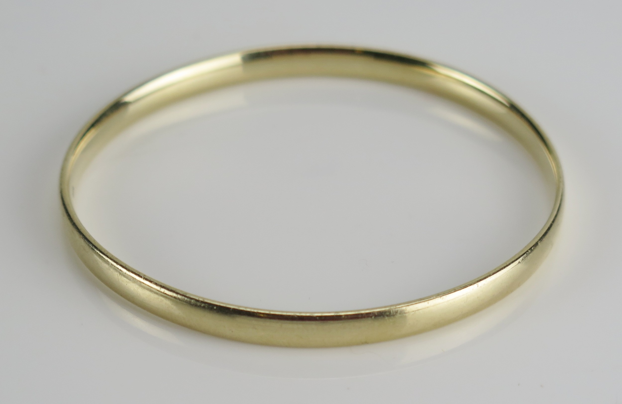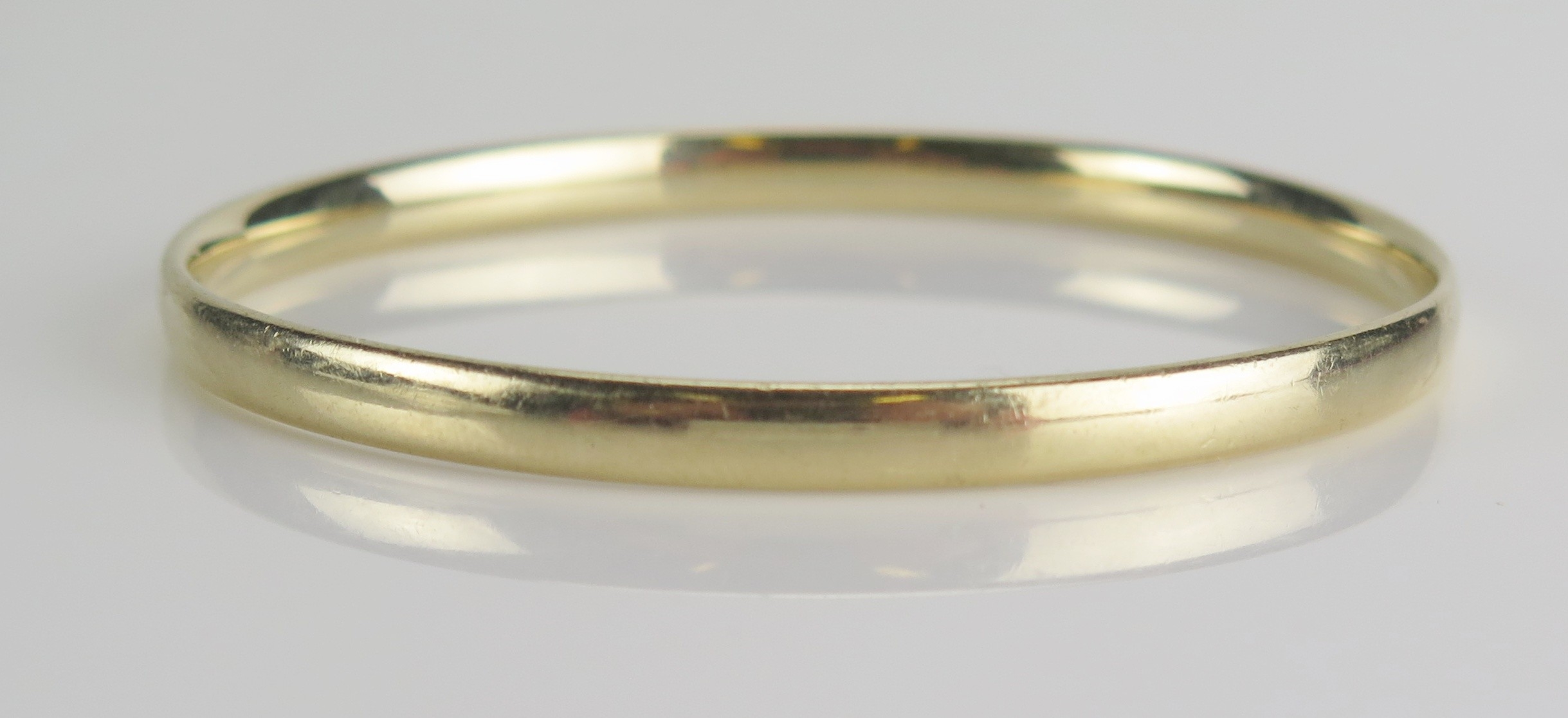 Solid 9ct gold bangle, 5mm wide, 61mm diam., hallmarked, 19.07g