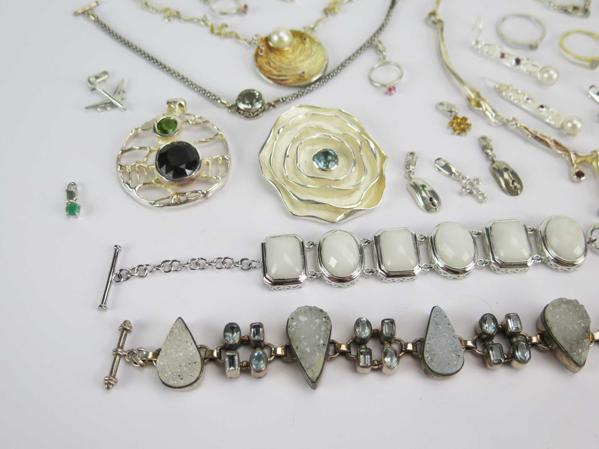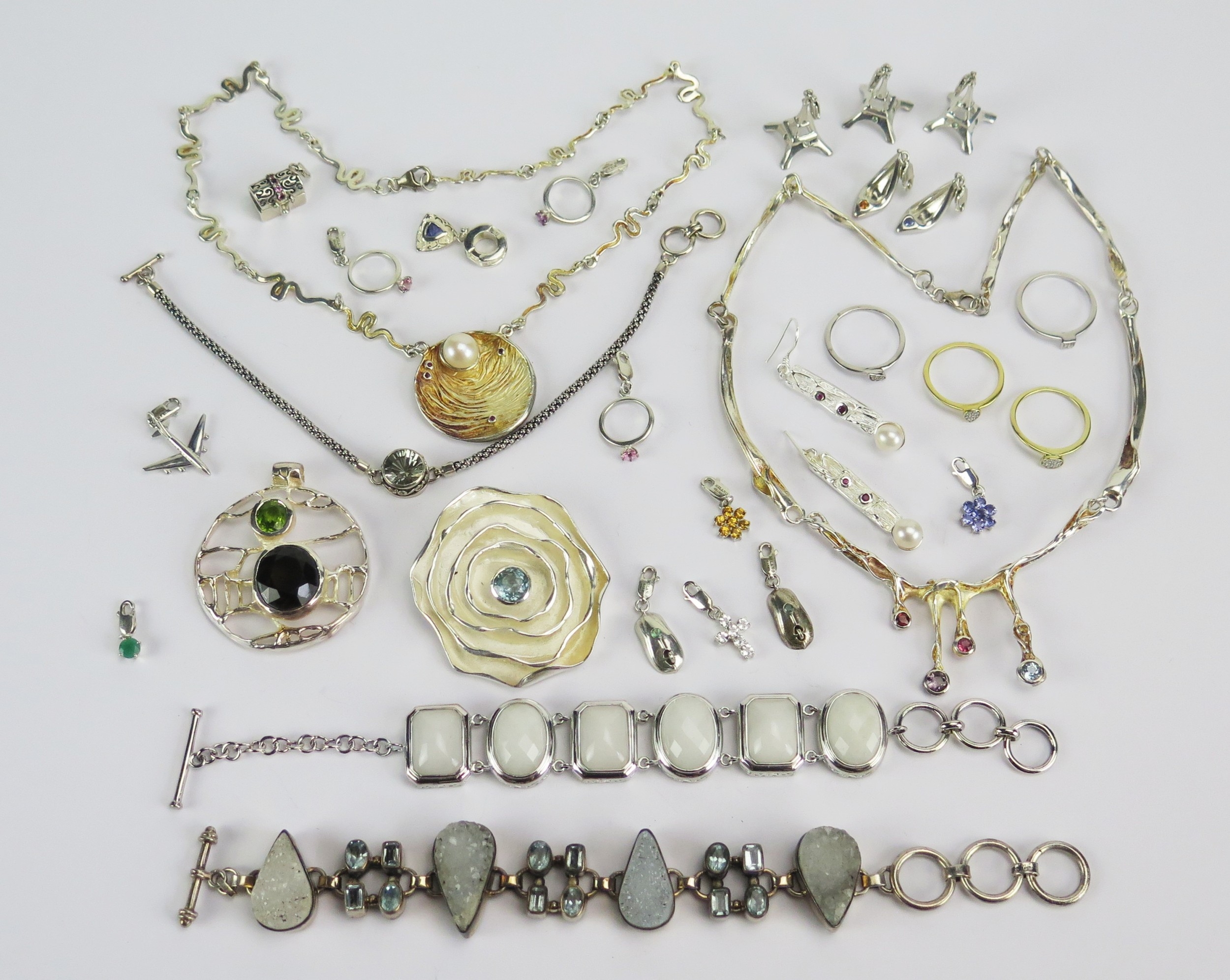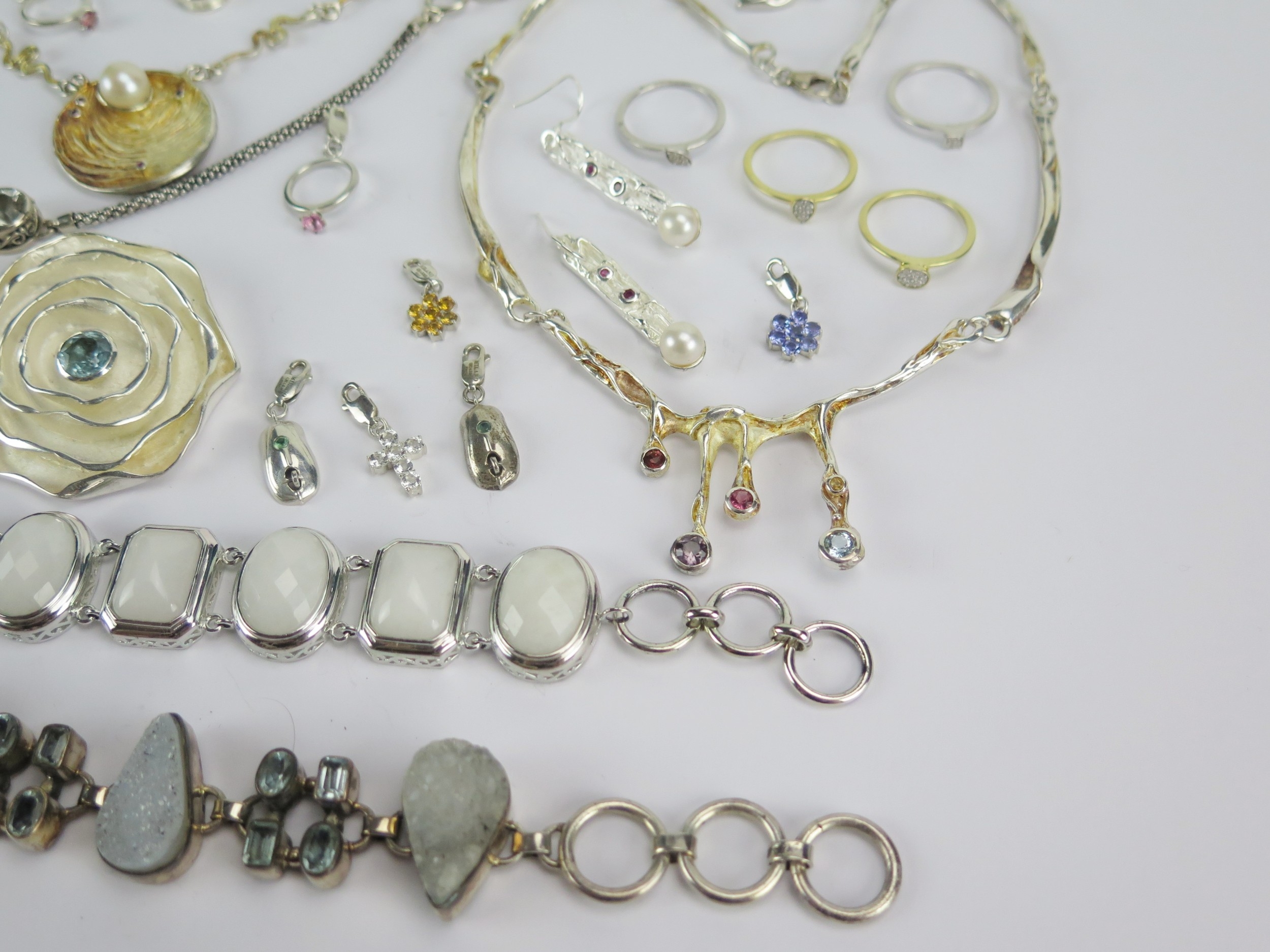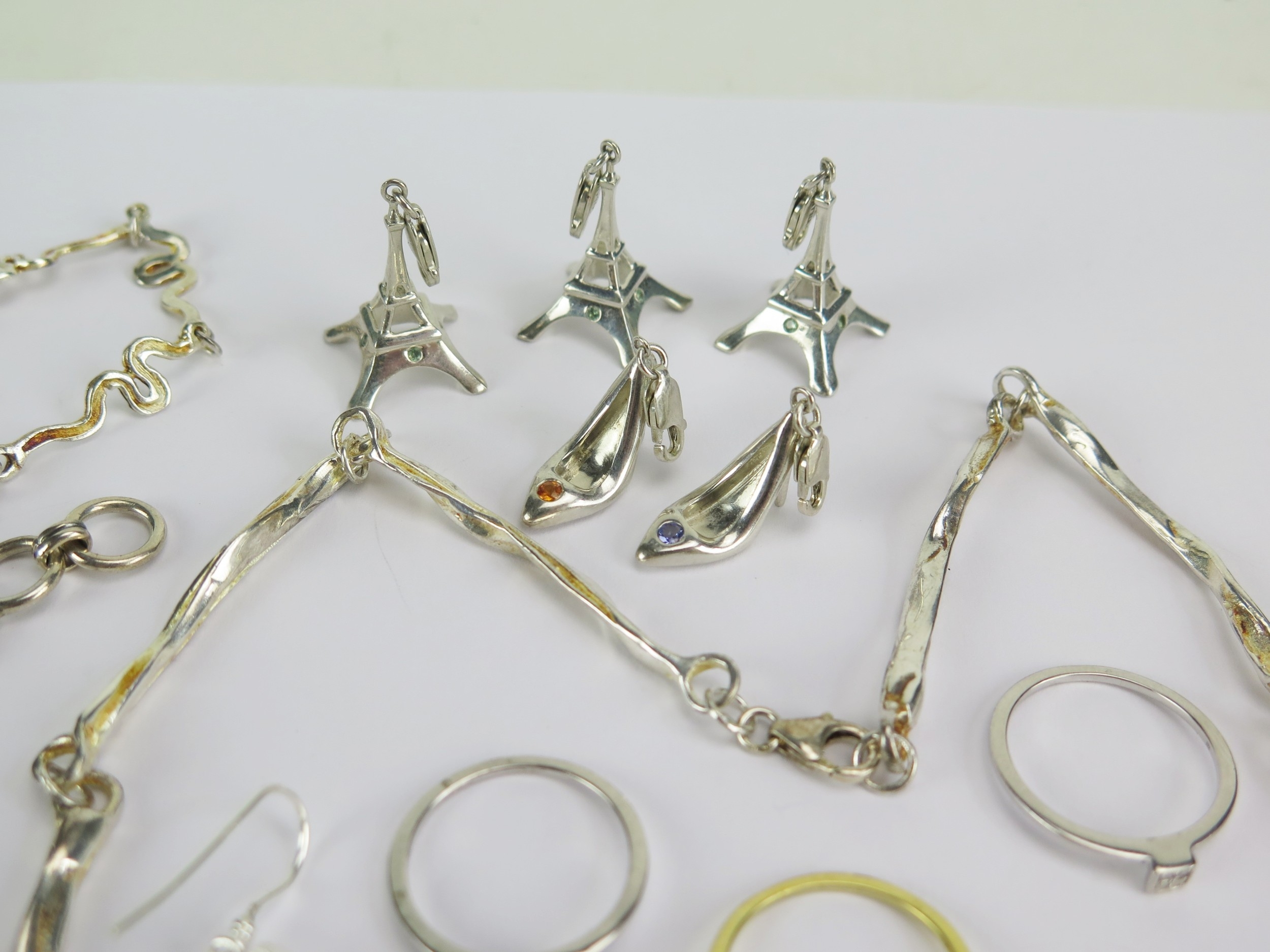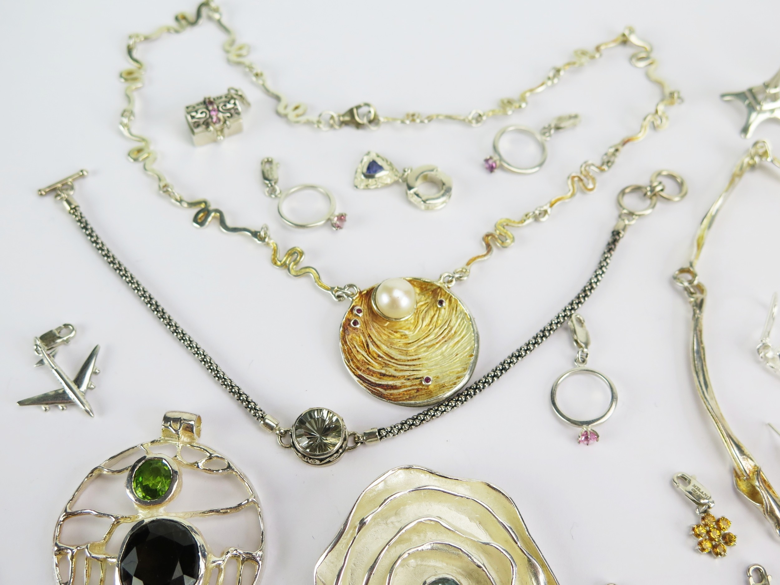 Selection of silver jewellery including fifteen Milano charms, 264g gross of marked items, and one piece of white metal jewellery