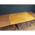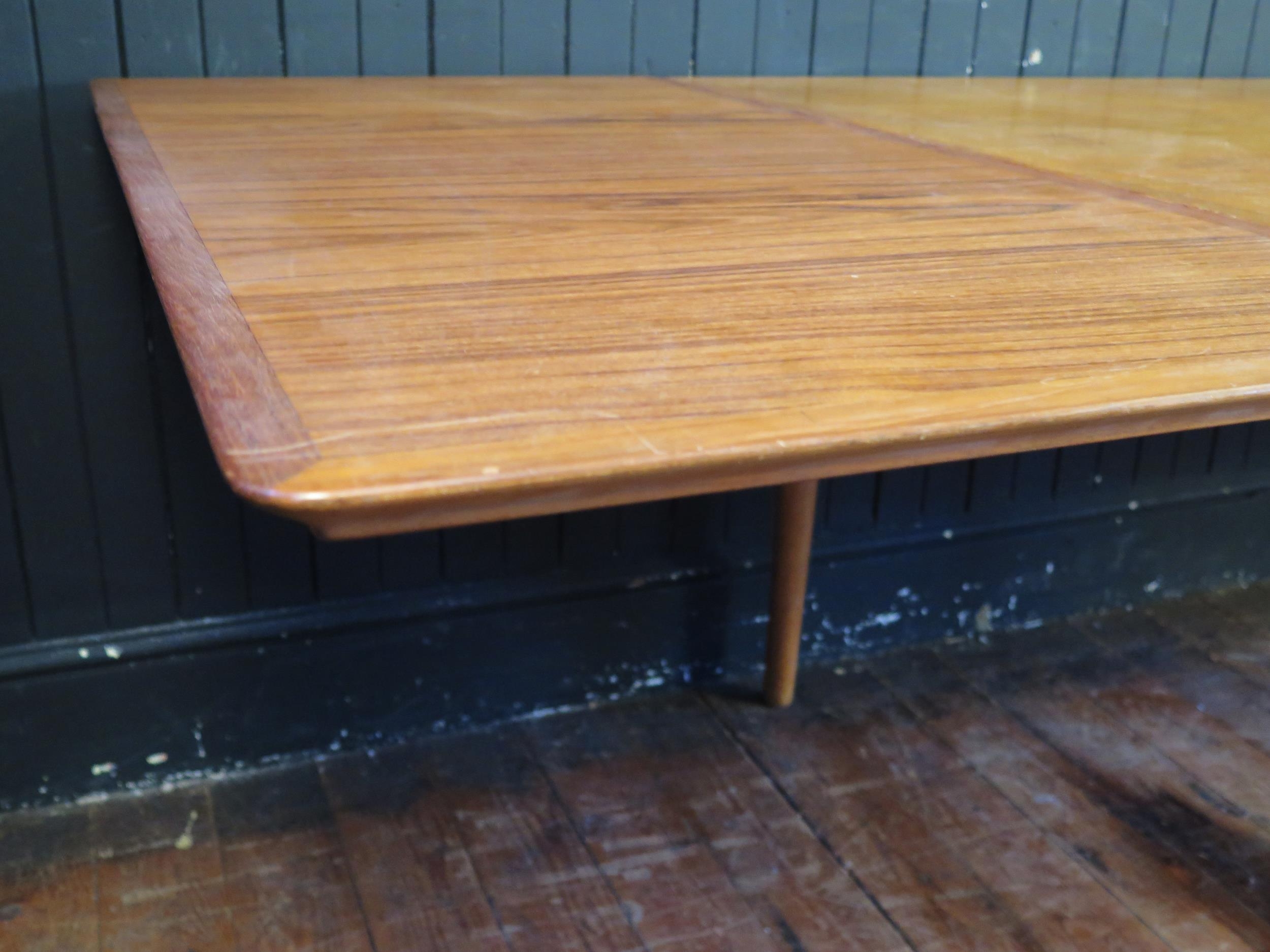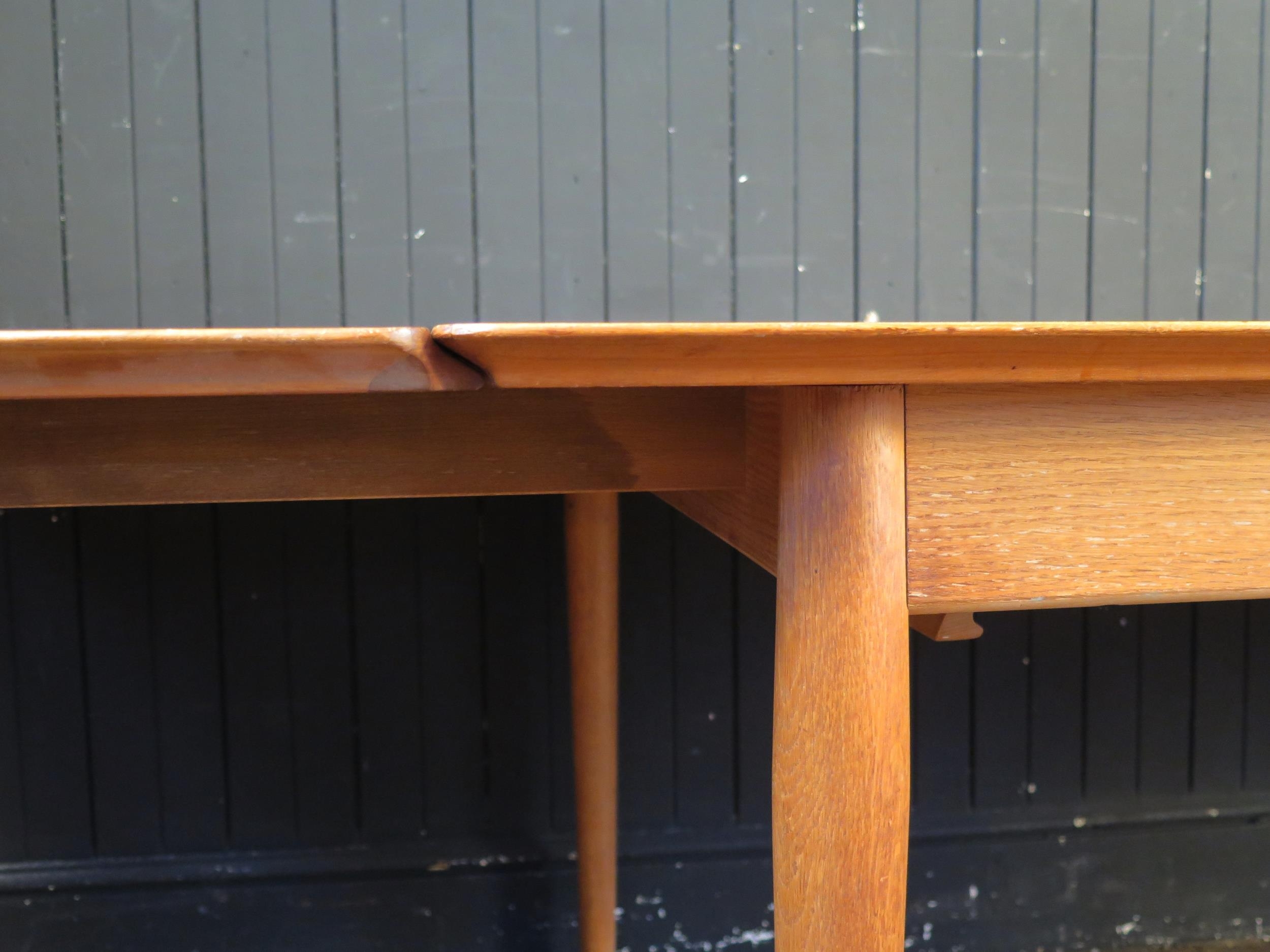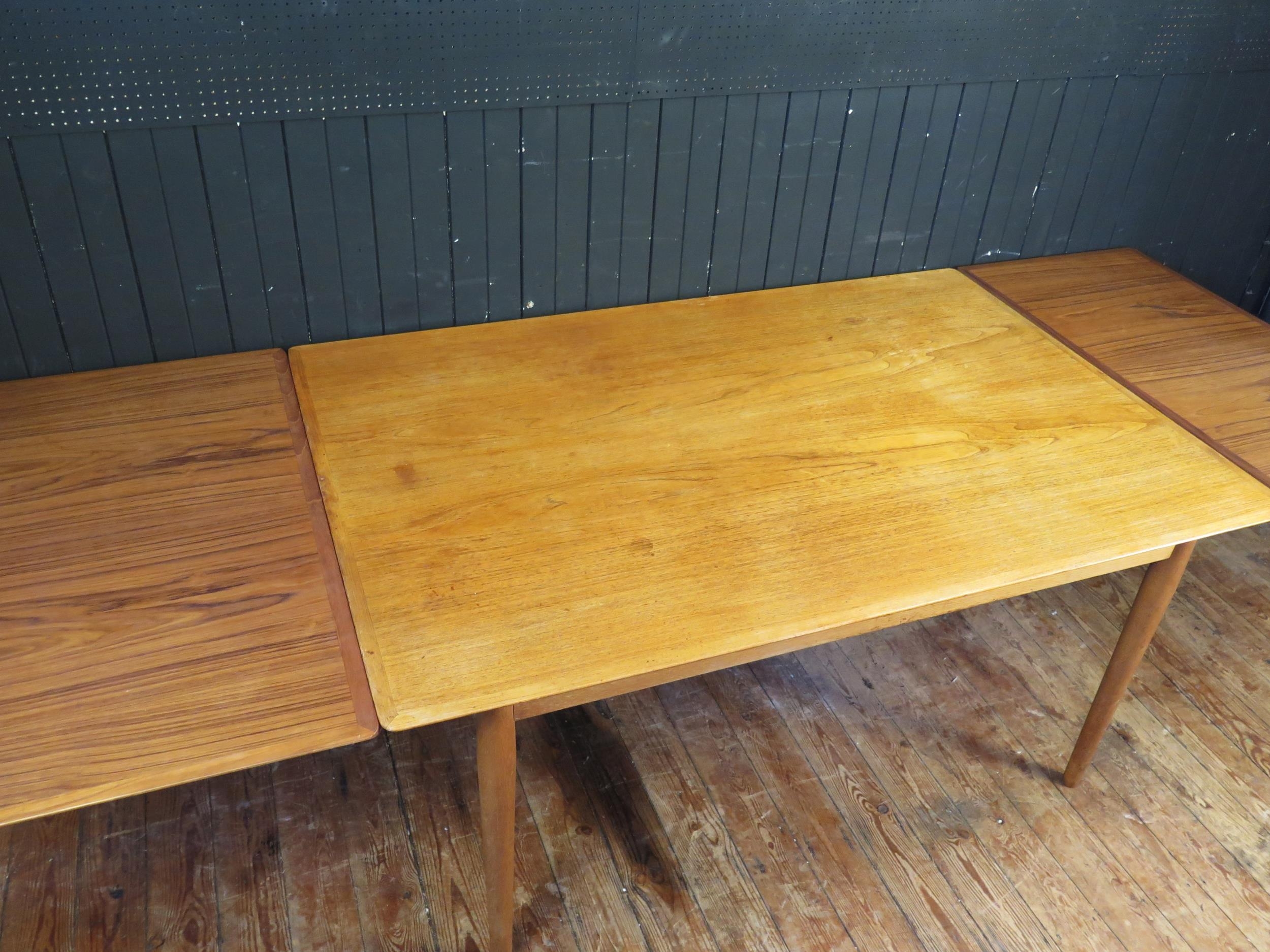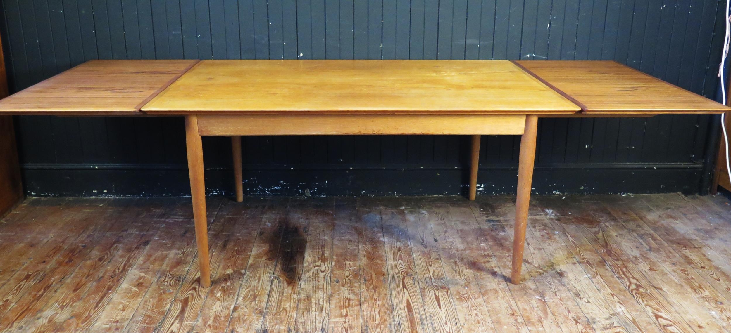 A Sibast Danish teak extending dining table, the rectangular top with two spare leaves, raised on turned and tapering legs, 260cm extended, 72cm high, 100cm deep.