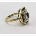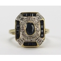 A 9ct Gold, Sapphire and Diamond panel Ring, 16.5x14.1mm head, size L.5, Birmingham hallmark, 4.3g. Boxed