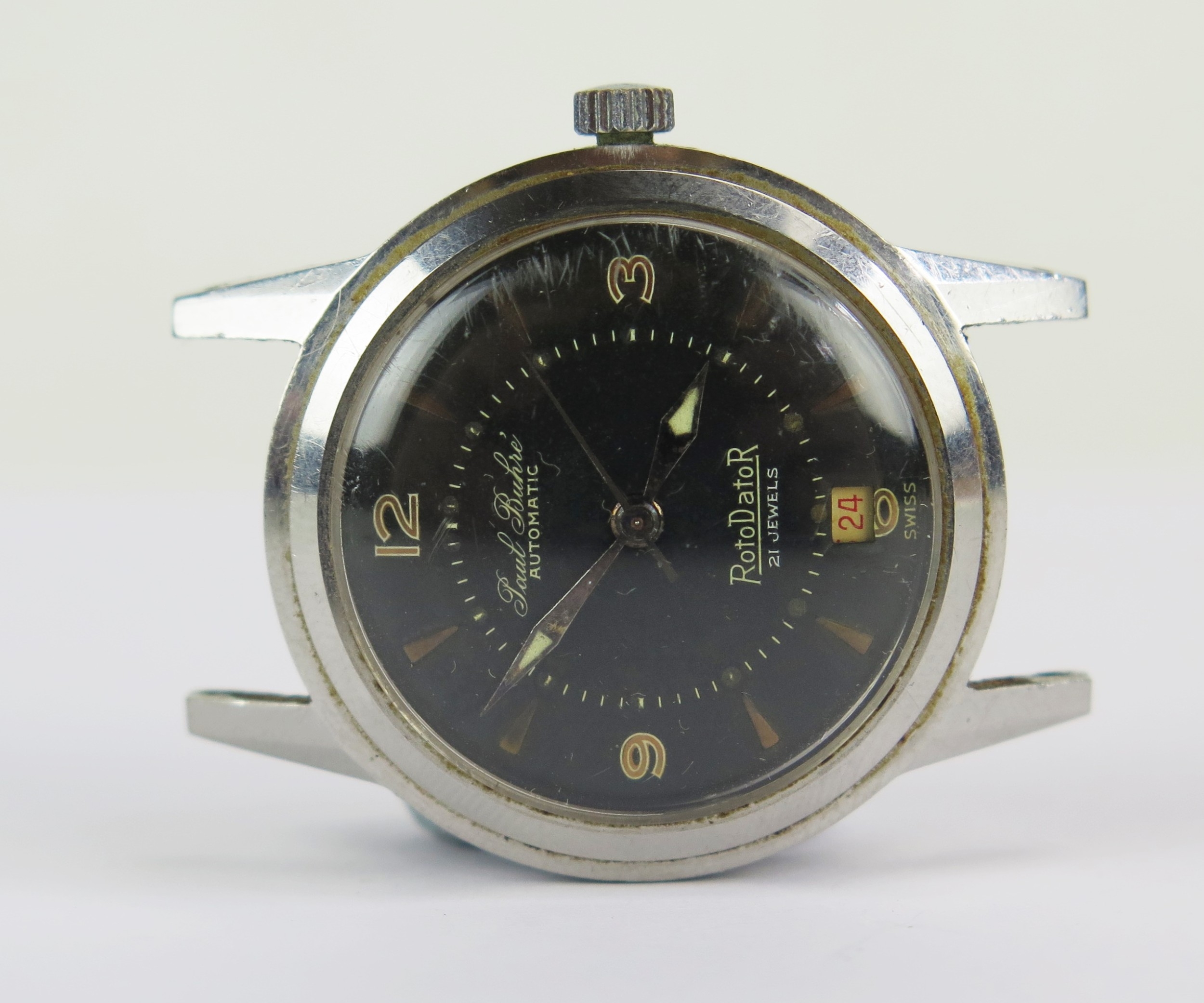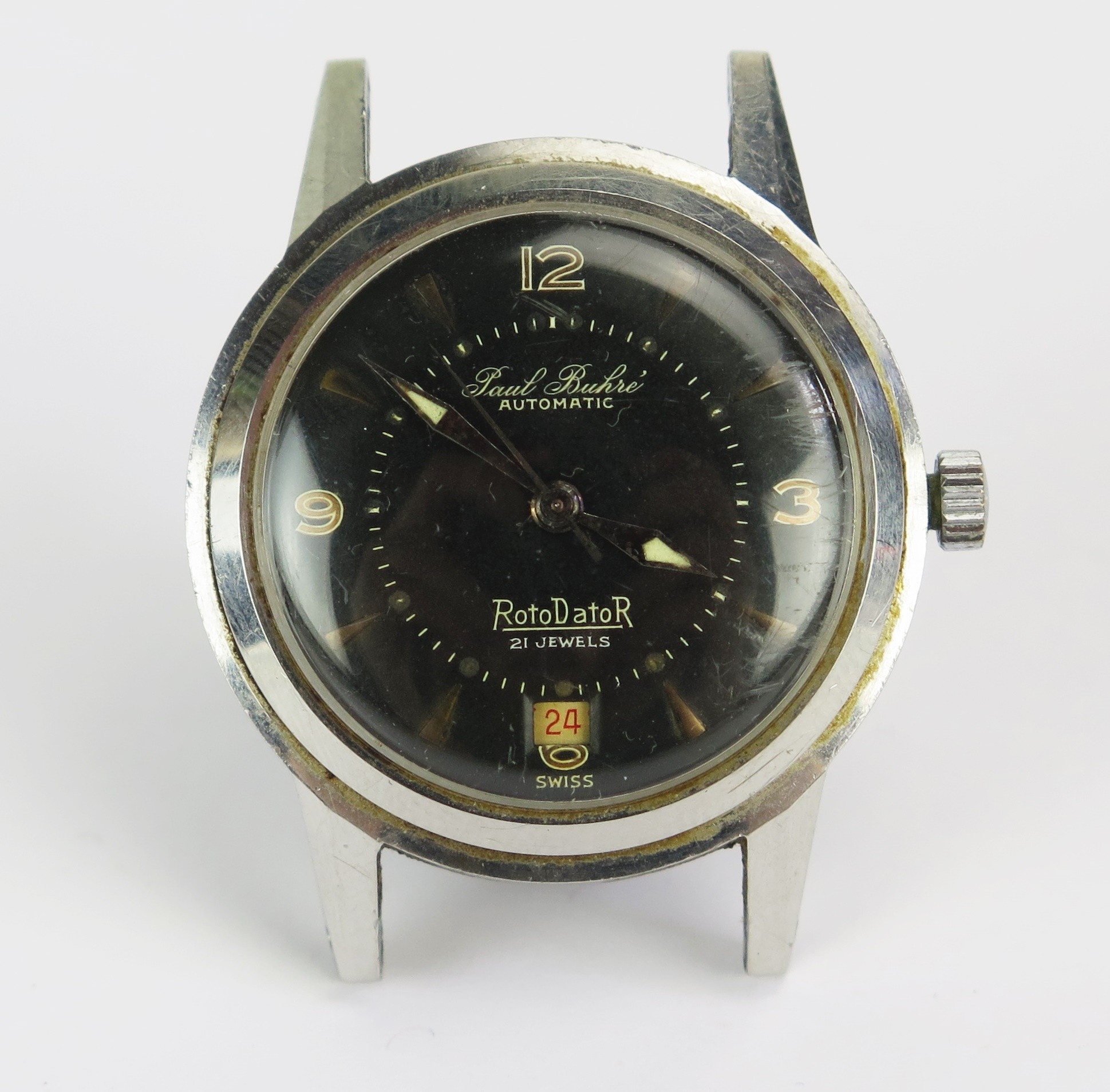 Paul Buhre RotoDatoR Stainless Steel Wristwatch with 21 jewel automatic movement, centre seconds and date aperture, the 33.2mm case back no. 153462, Favre-Leuba caliber 692 movement no. 251269. Winds and runs