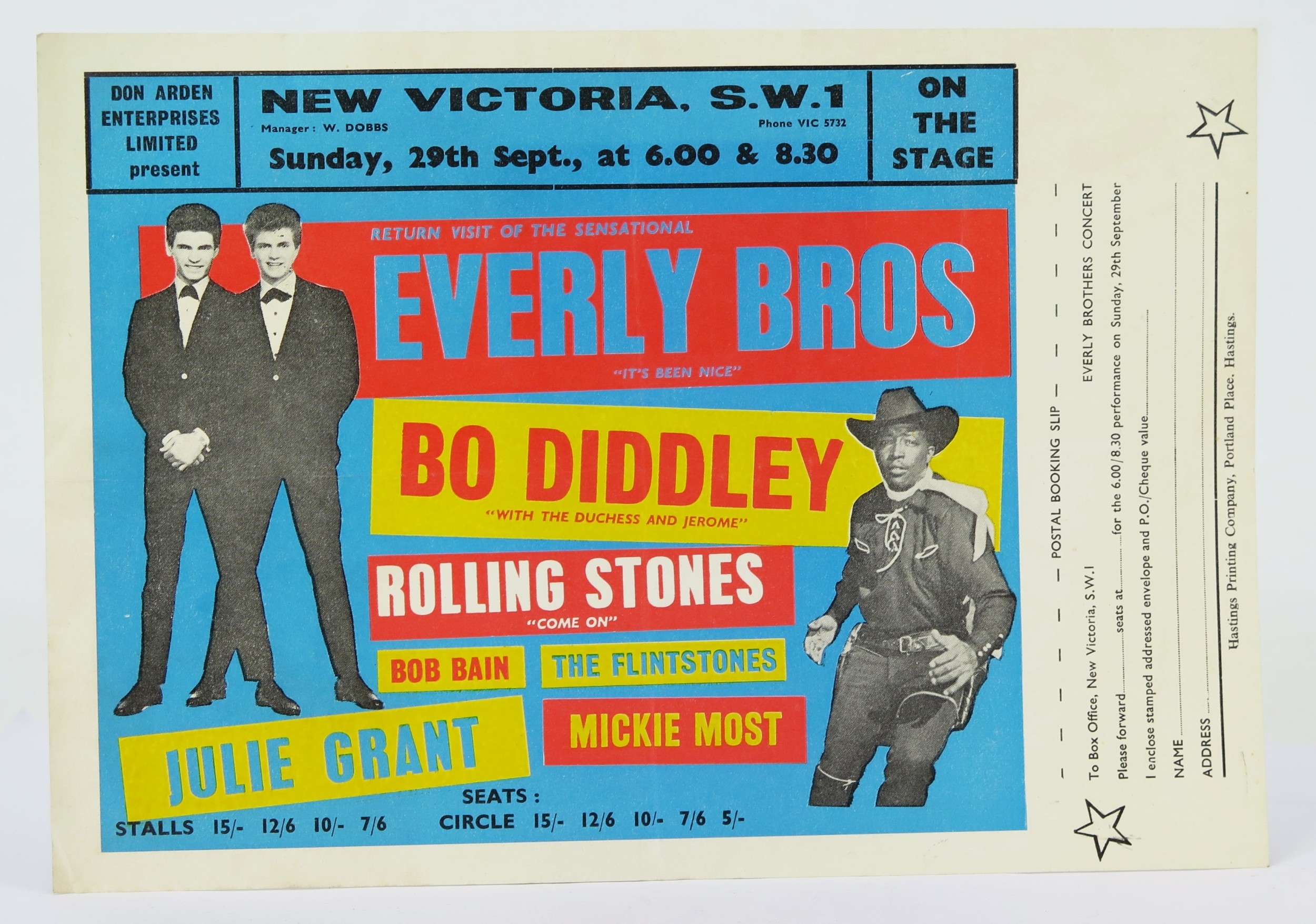 Everly Bros, Rolling Stones, Bo Diddley; Early UK handbill promoting a show at the New Victoria London on 29th September 1963.