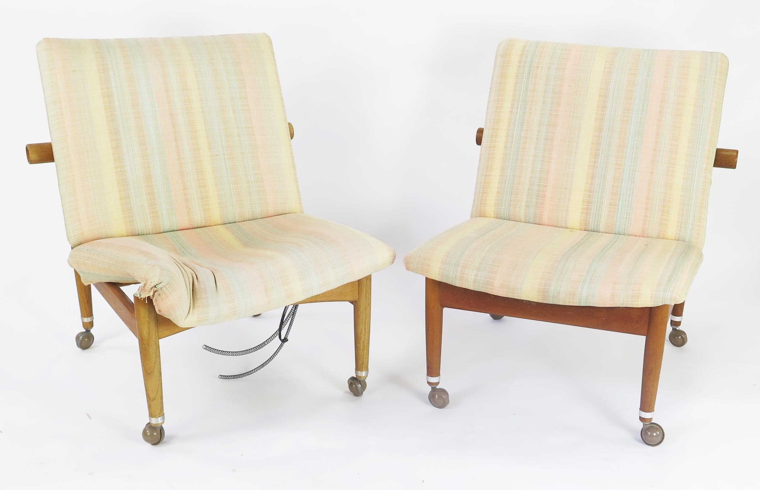 A pair of mid-century Danish design 'Japan' chairs by Finn Juhl for France & Daverkosen, predecessor of France & Son, with padded seats and backs, (one A/F)