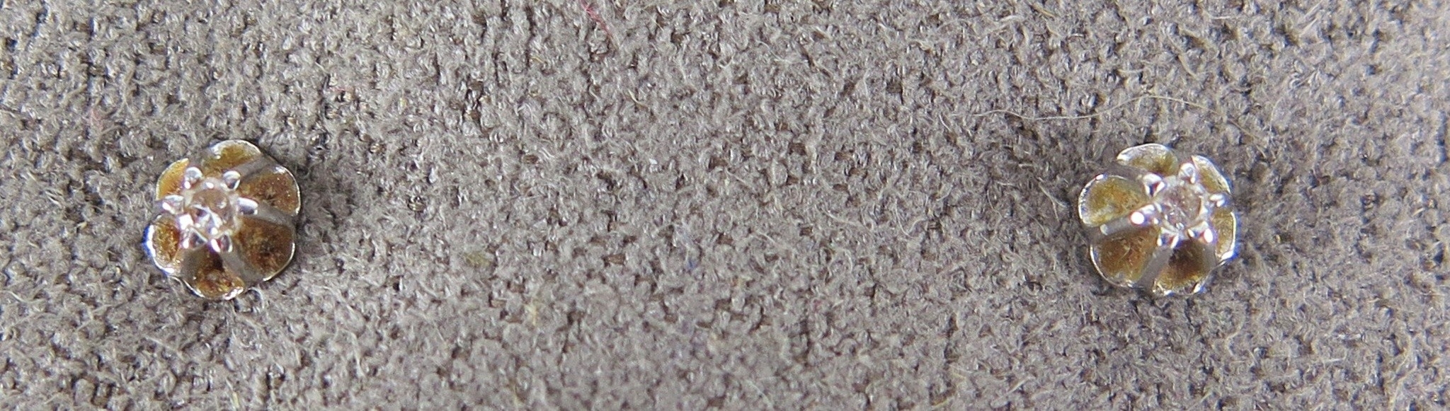 Pair of 14K white gold and diamond stud earrings, c, 1mm stones, stamped 585, 0.87g