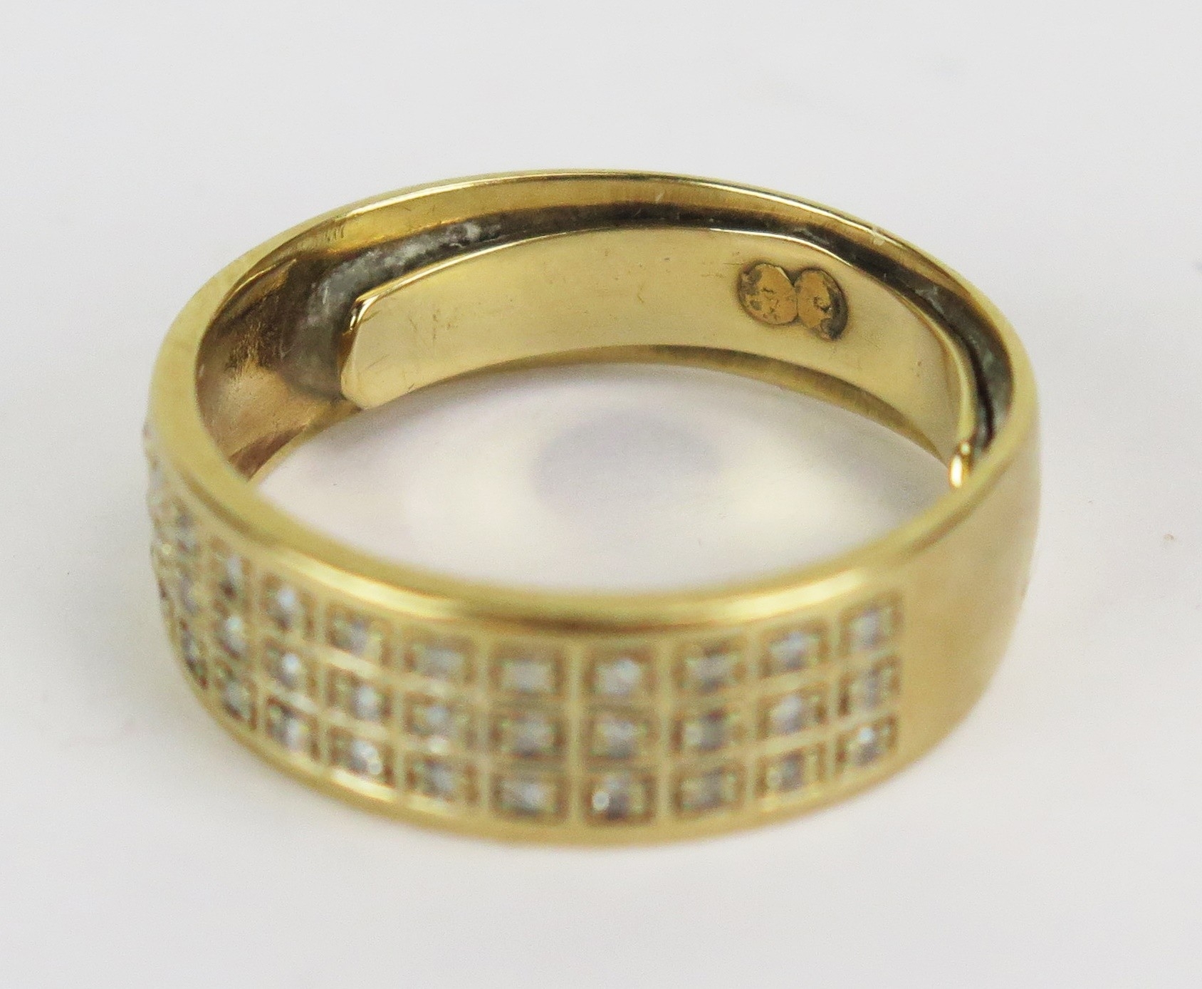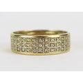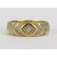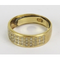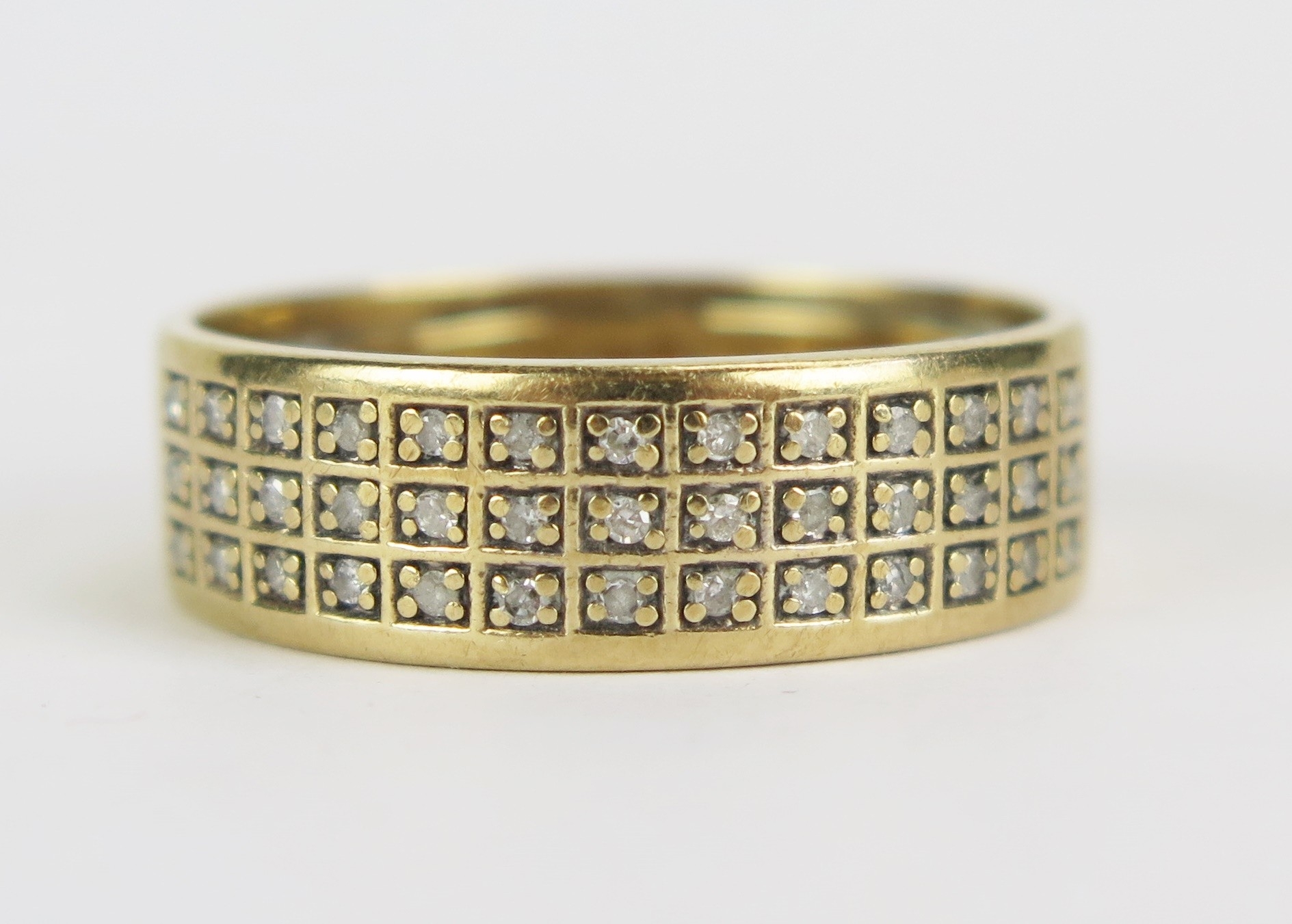 9ct Gold and Diamond Three Row Wedding Band, 7mm wide, size R.5, stamped 375DIA, 4.42g