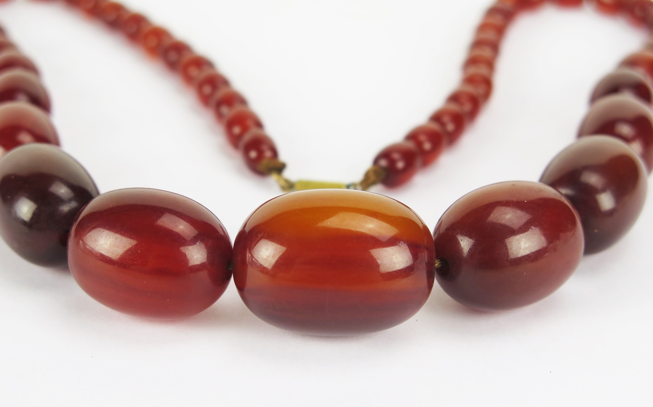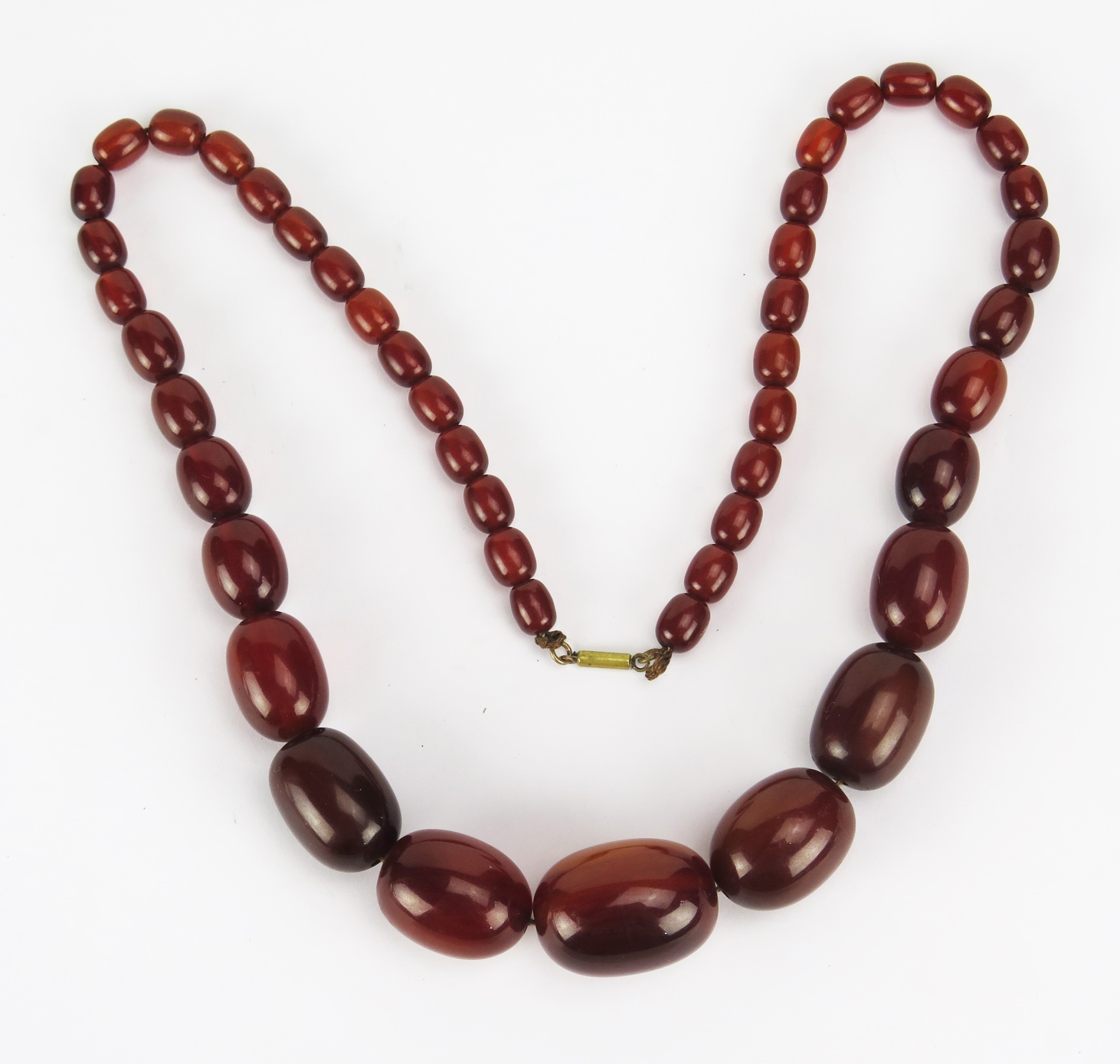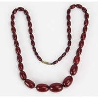 Faux Amber Graduated Oval Bead Necklace, largest 28.6x20.93mm, 60cm, 63.5g