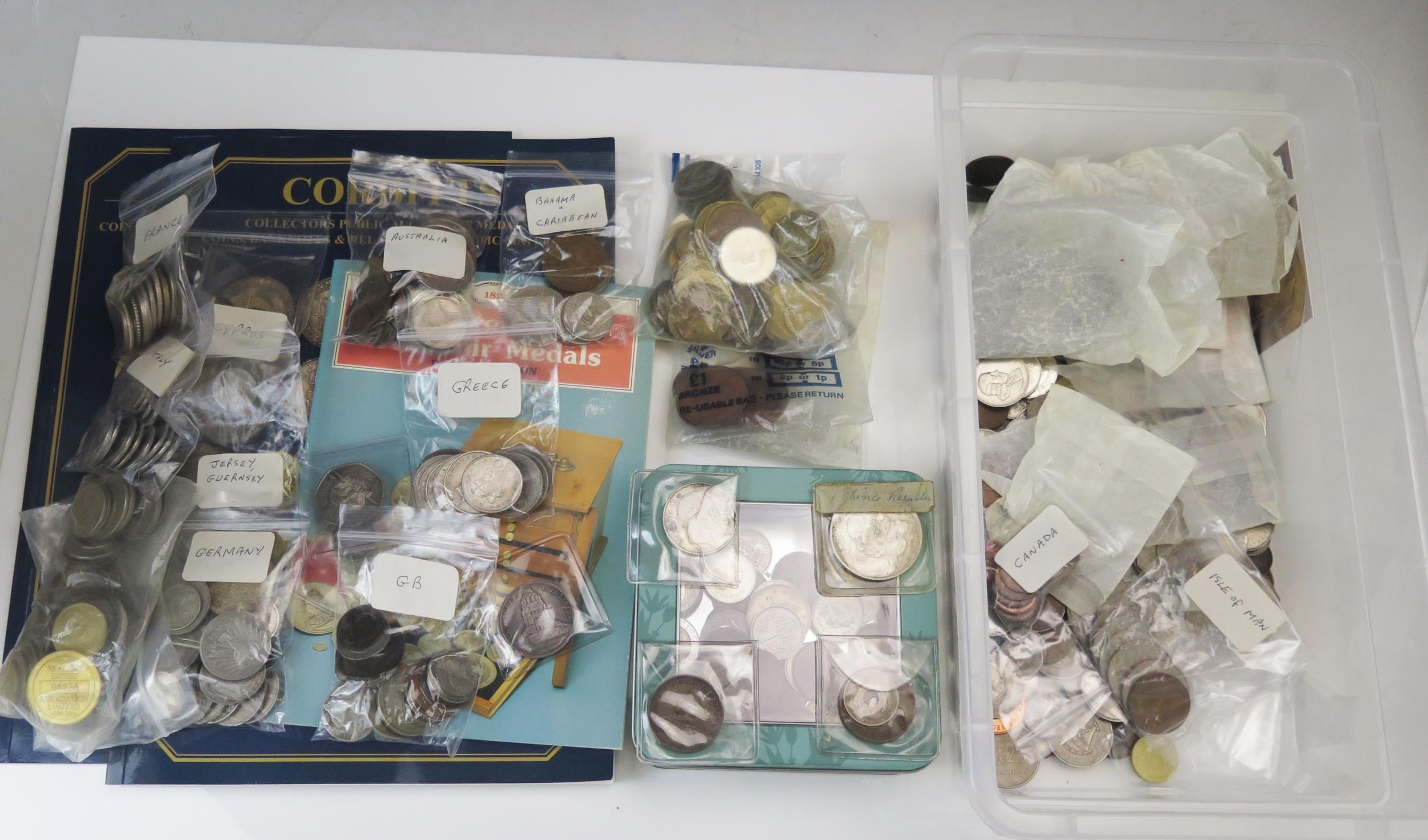 A Selection of Silver and other Coins including a 1913 10 Marks, 1875 2 Kroner, etc. and coin catalogues