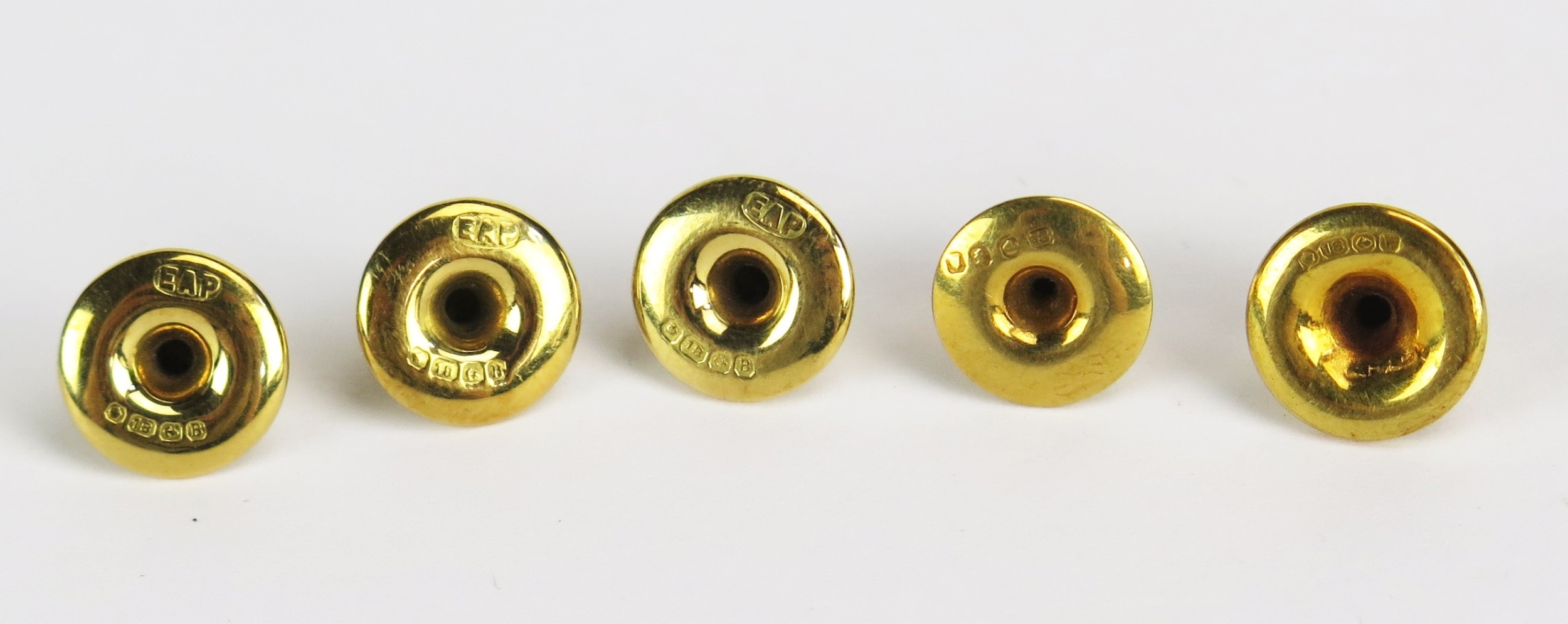 Five 18ct Gold Studs, Birmingham hallmarks, 4g