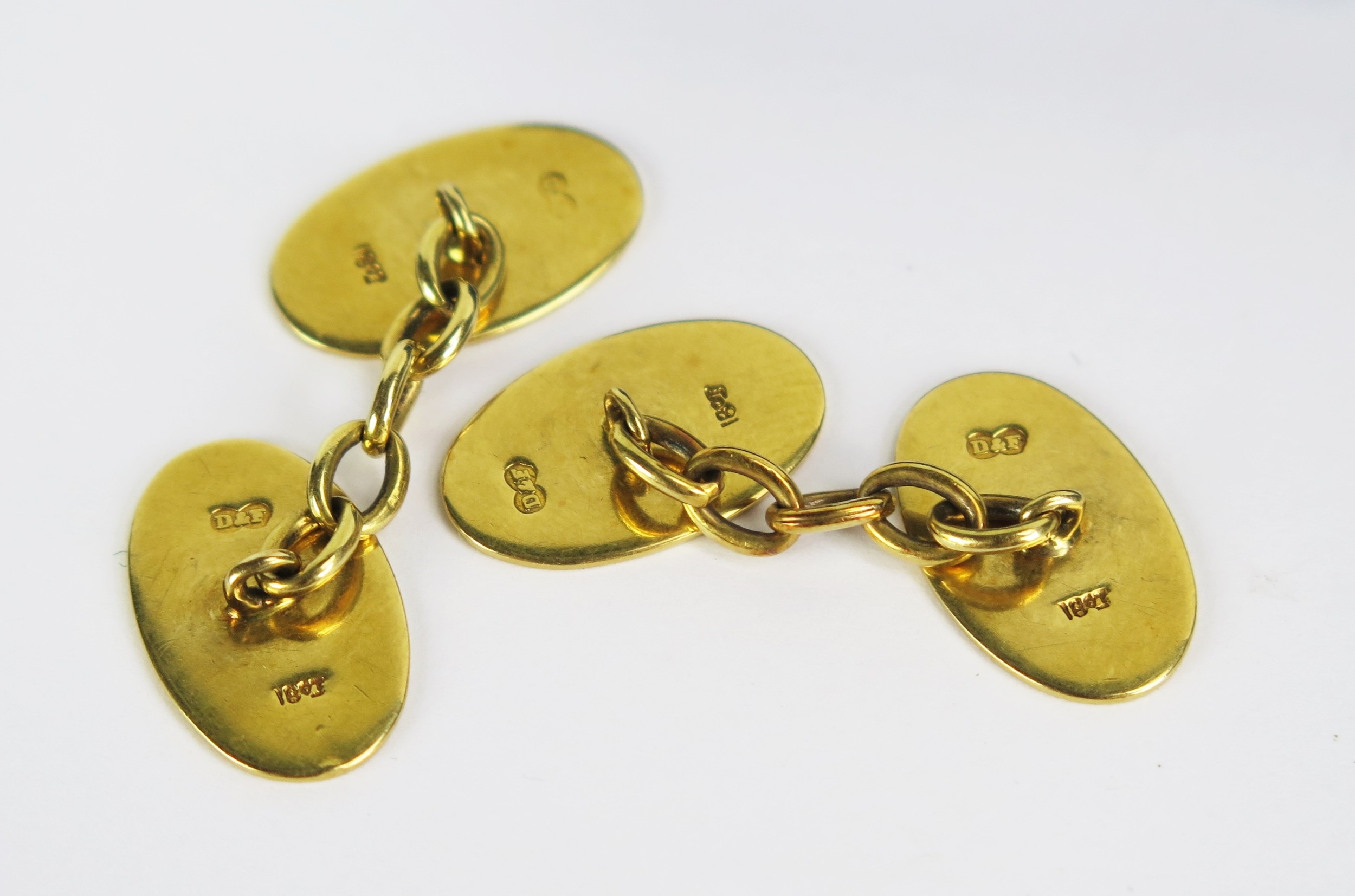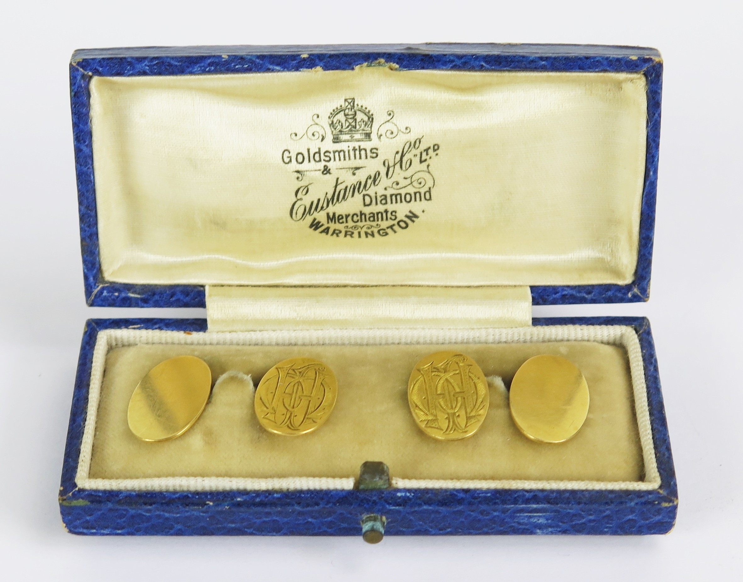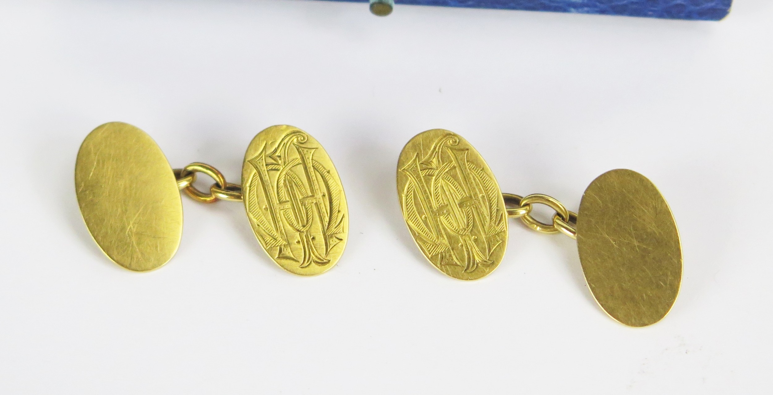 15ct Gold Cufflinks with engraved monogram, stamped 15ct D&F, 8.19g
